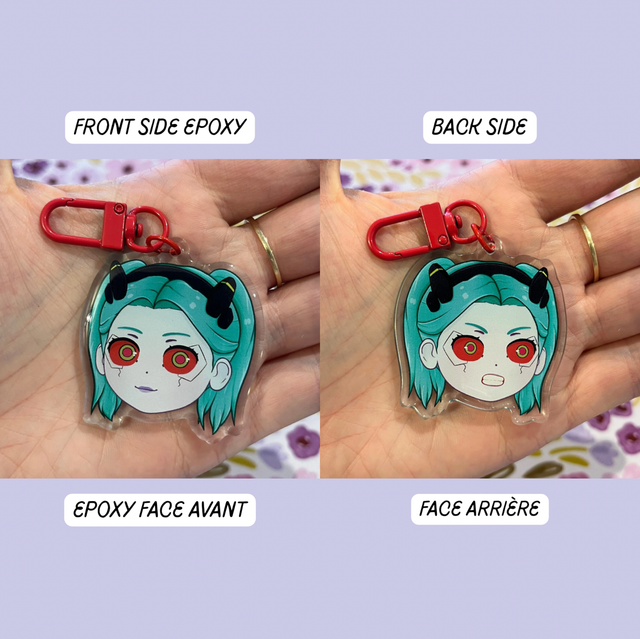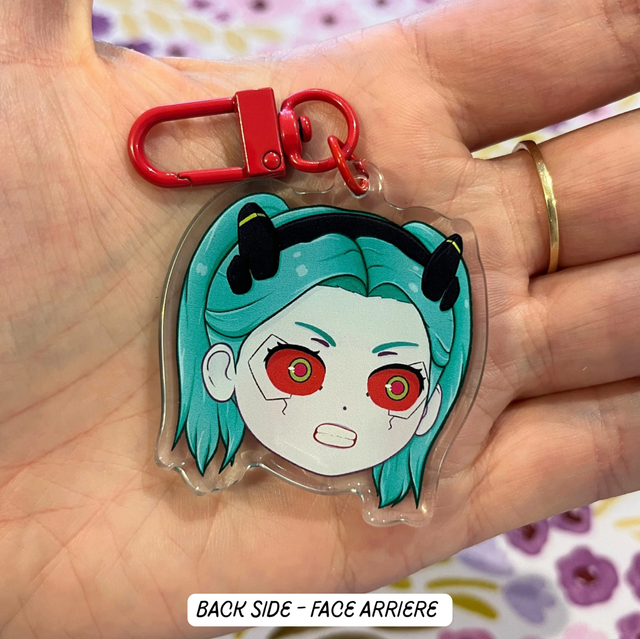 Plongez dans l'univers de Cyberpunk avec ce porte-clés Rebecca chibi ! Son visage adorable et expressif ajoutera du fun à vos accessoires.