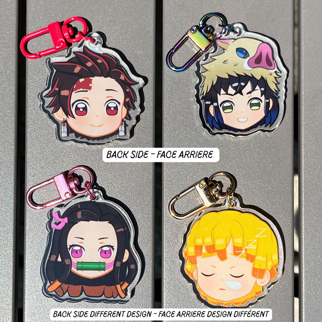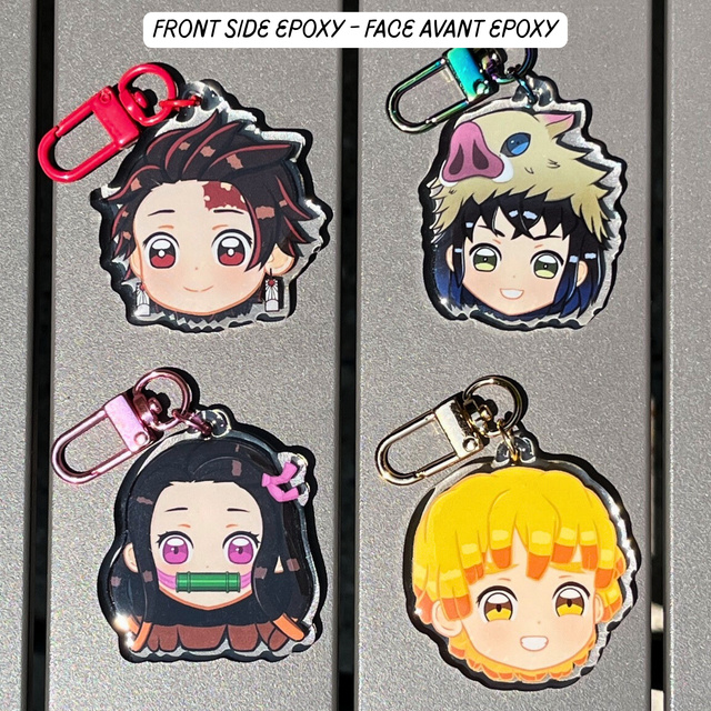 Découvrez ce porte clés chibi Demon Slayer ultra-mignon de Tanjiro Kamado ! Parfait pour personnaliser vos accessoires avec son visage adorable et expressif. (Nezuko Kamado, Inosuke Hashibira et Zenitsu Agatsuma aussi disponibles sur la boutique)