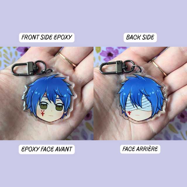 Découvrez ce porte-clés chibi ultra-mignon de Jellal! Parfait pour personnaliser vos accessoires avec son visage adorable et expressif. (Natsu Dragnir, Lucy Heartfilia, Grey Fullbuster, Happy, Erza Scarlett et Juvia Loxar aussi disponibles sur la boutique)