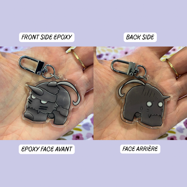 Découvrez ce porte-clés chibi de Alphonse dans son armure! Parfait pour personnaliser vos accessoires avec ses deux faces différentes (Edward aussi disponible sur la boutique)