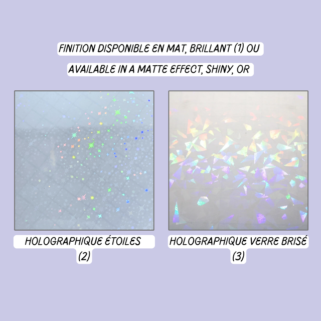 - Finitions : Brillant, Holographique étoiles, Holographique verre brisé