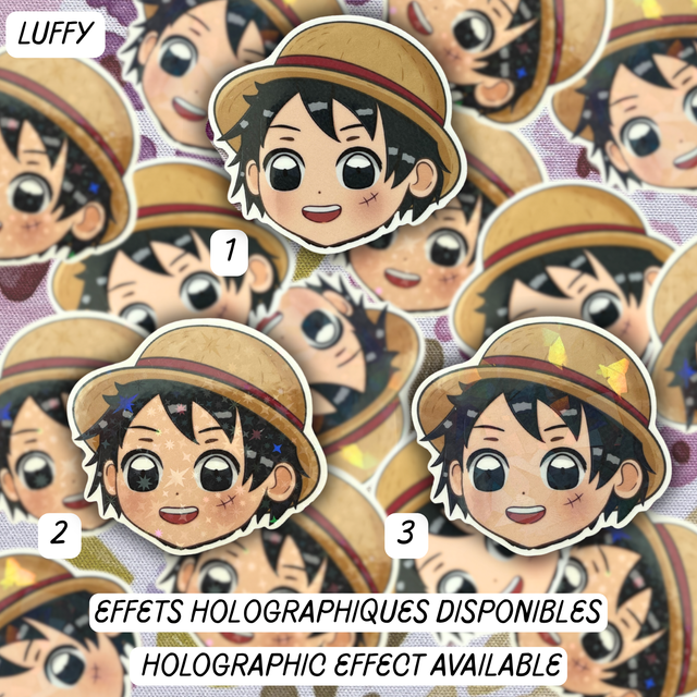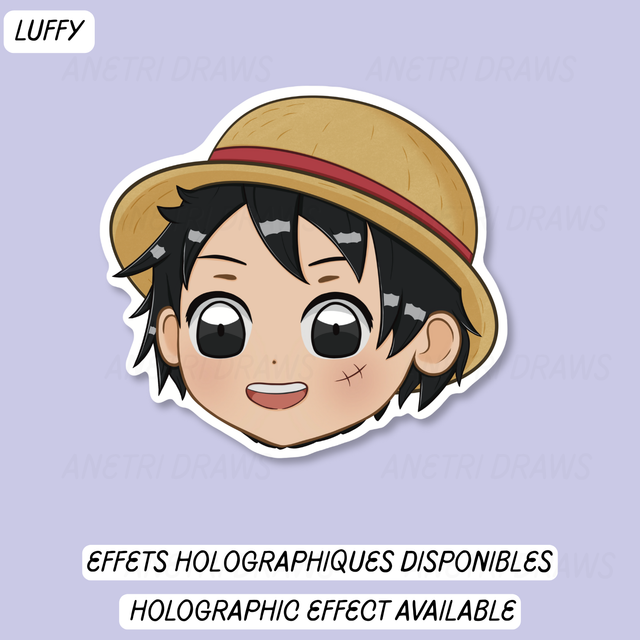 Plongez dans un univers ultra-mignon et fun avec ce sticker diecut chibi de Luffy, le pirate au chapeau de paille ! Son sourire inébranlable et son chapeau de paille iconique ajouteront une touche d'aventure et de bonne humeur à vos accessoires.